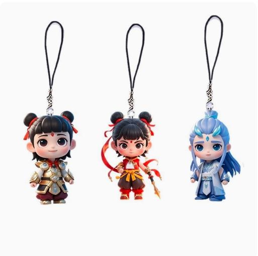Cartoon Character Nezha 2 Mobile Phone Chain Nezha Aobing Backpack Hanging Decoration