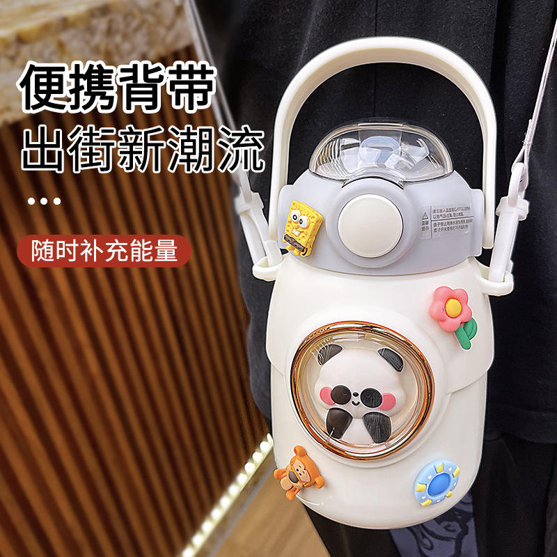 Cartoon Children's Stainless Steel Thermos Cup 316 Large Capacity With Straw Portable Student Water Bottle Back To School