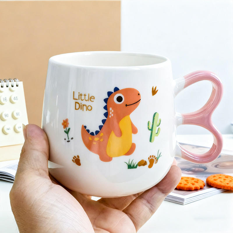 Cartoon Dinosaur Ceramic Mug For Kids And Adults With Pink Handle Gift Cup For Breakfast Or Milk