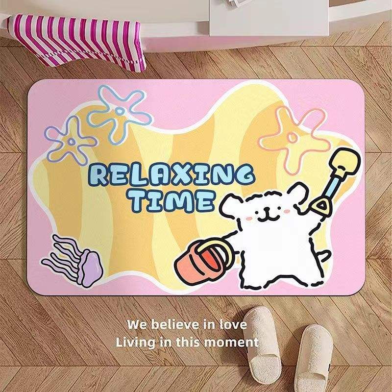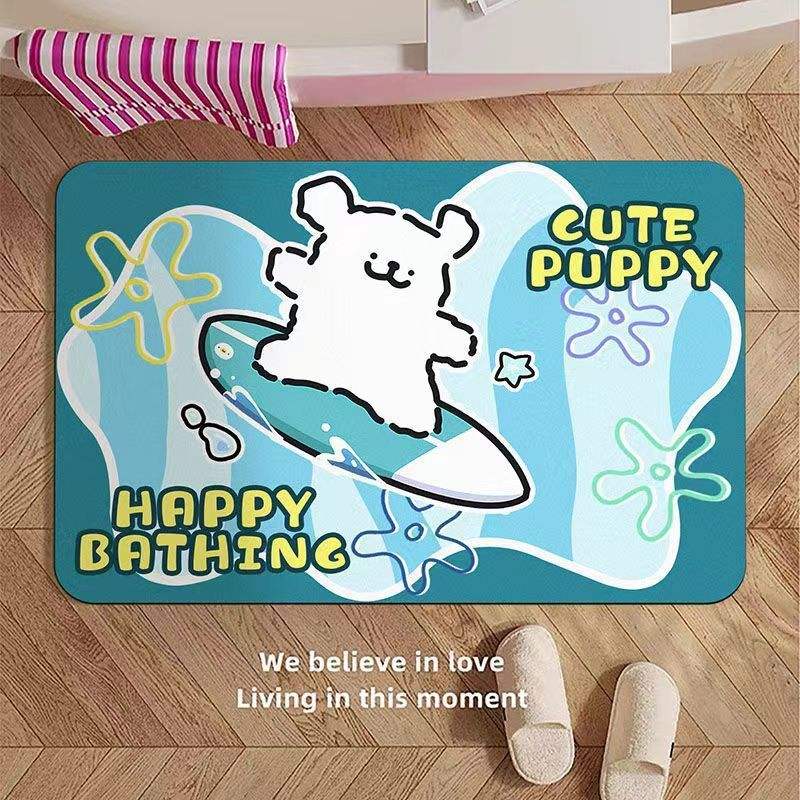 Cartoon Dog Bath Mat Rectangle Anti Slip Water Absorbent Diatom Mud Floor Mat For Home Bathroom Kitchen Use