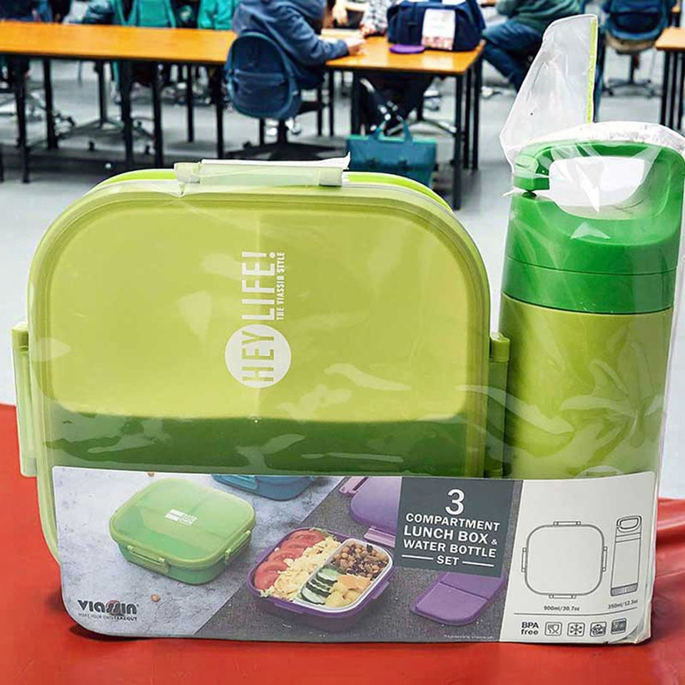 Cartoon Double-Layer Rectangular Sealed Lunch Box Set with Children's Water Bottle