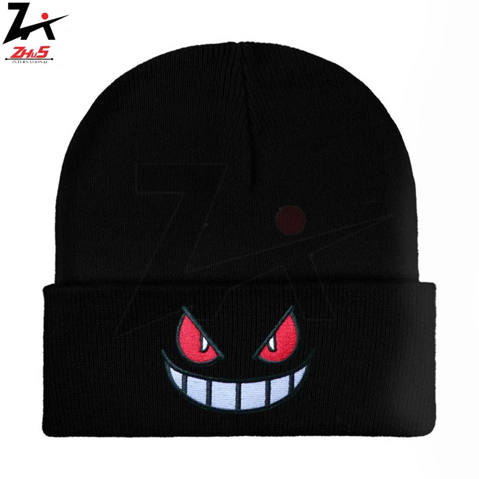 Cartoon Embroidered Bows Punk Style Beanie Popular American Anime Gengar Cozy Knitted Wool Hat Autumn Winter Warm Soft Unisex