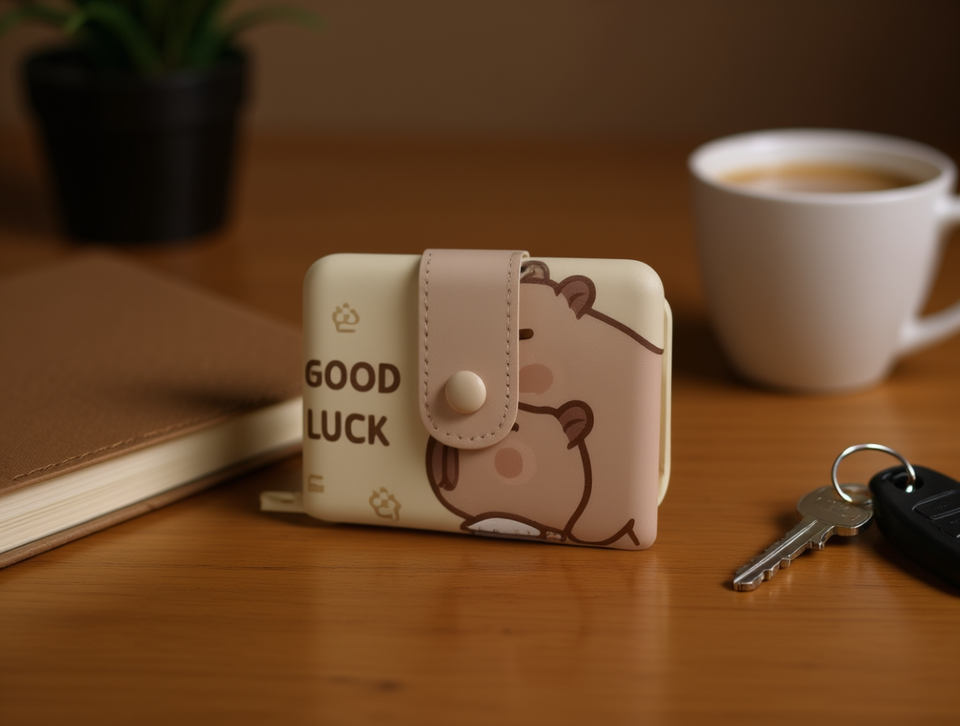 Cartoon Foldable Single Button Wallet Small Size Pu Material Daily Use Unisex