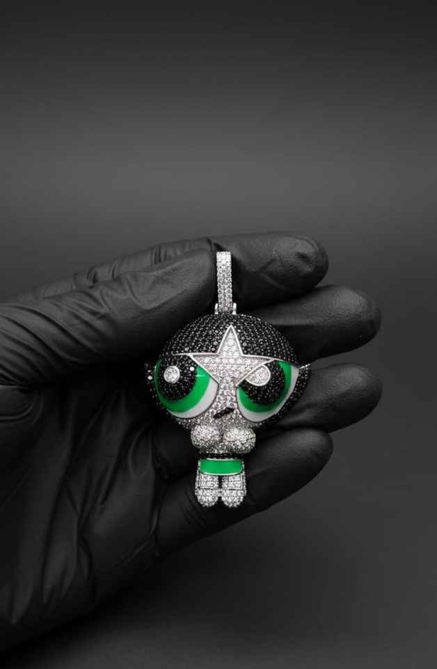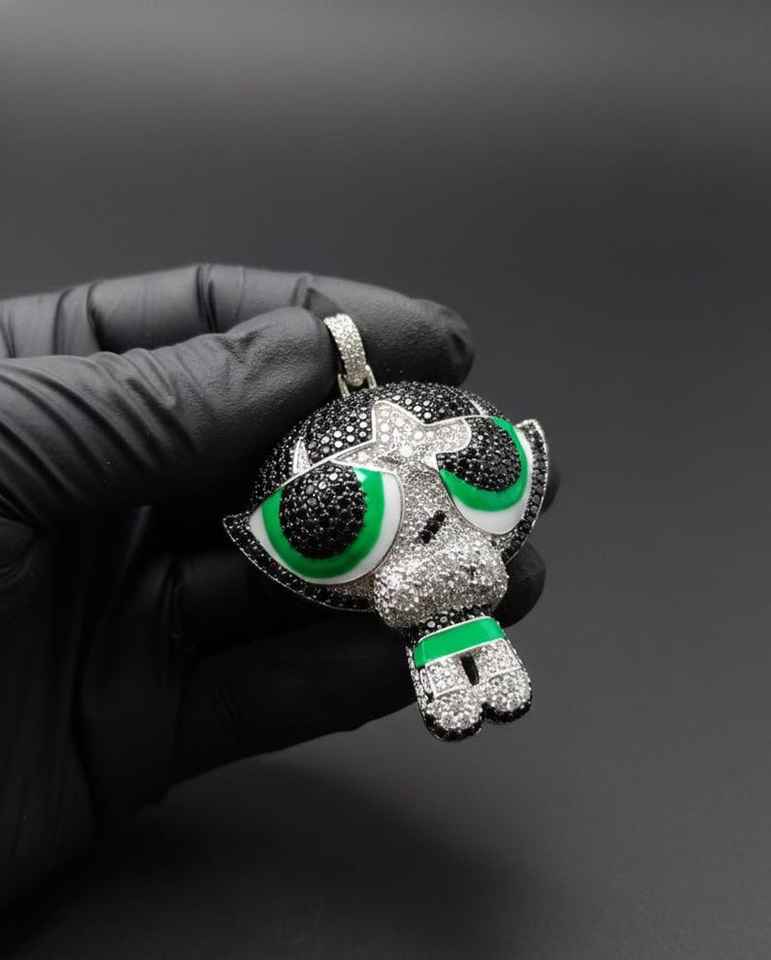 Cartoon Girl Pendant Green Enamel Black And White Stone Pendant Moissanite Round 925 Silver Fine Jewelry Pendants & Charms
