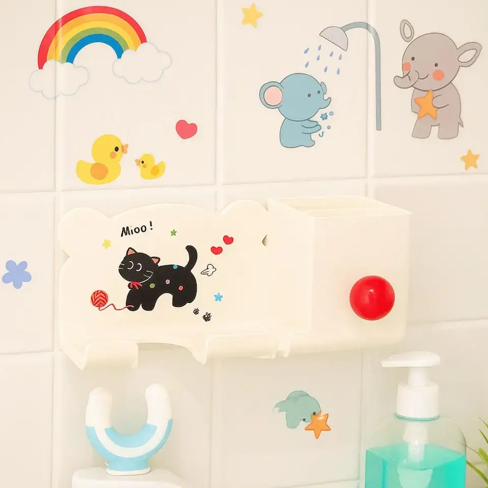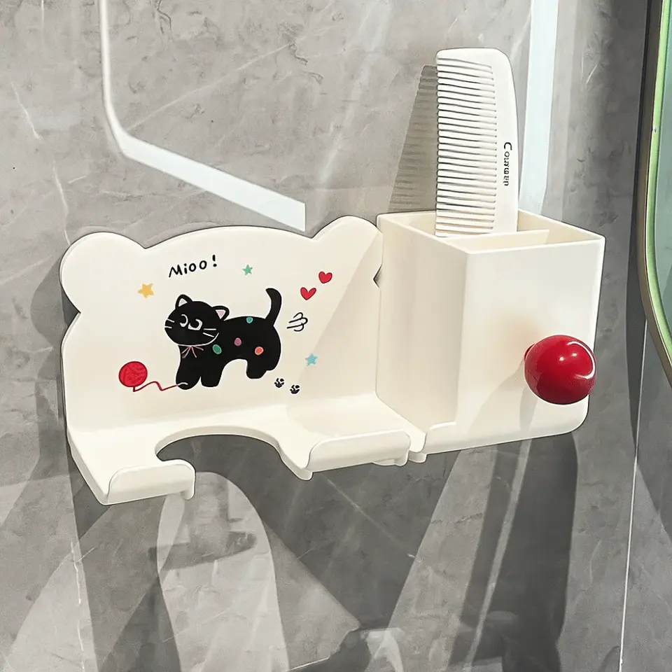 Cartoon Hair Dryer Storage Rack Waterproof Plastic Wall-Mounted Bracket Thickened Cylinder Design Simple Bathroom Storage Shelf