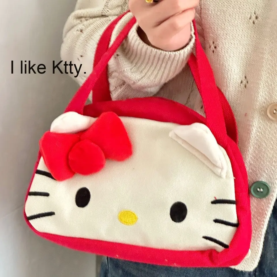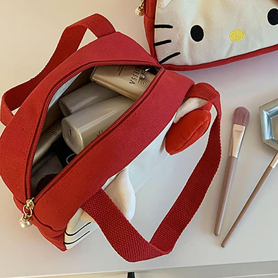 Cartoon KT Women's Canvas Travel Bag Large Capacity Portable Cosmetic Storage Zipper Closure Cute Cat Makeup Bag Fashion Style