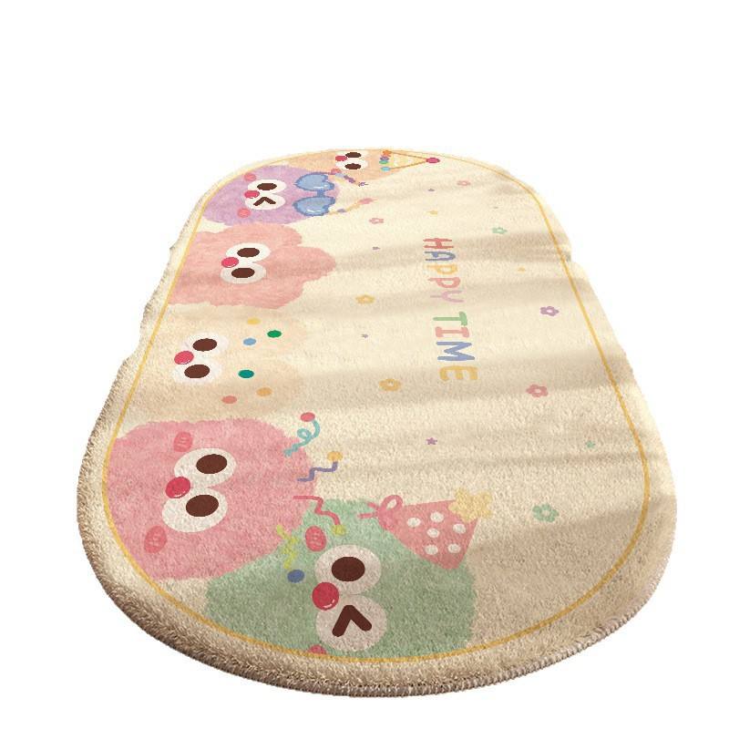 Cartoon Kids Floor Mat Oval Non Slip Patterned Rug For Bedroom Living Room Entryway Child Safe Easy Clean Spot Washable