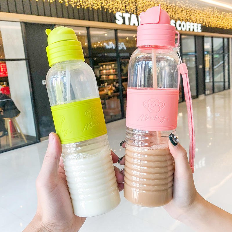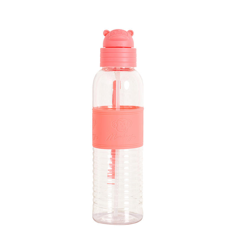 Cartoon Monkey Transparent Plastic Cup With Straw Portable Outdoor Sports Mug Student Cup