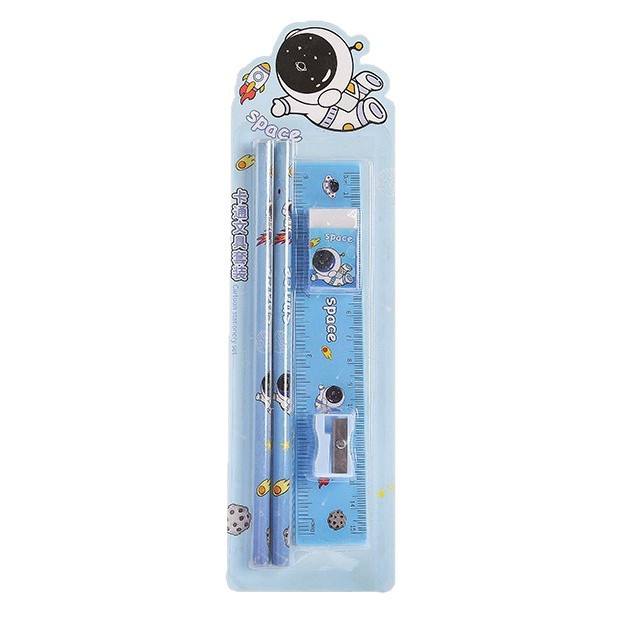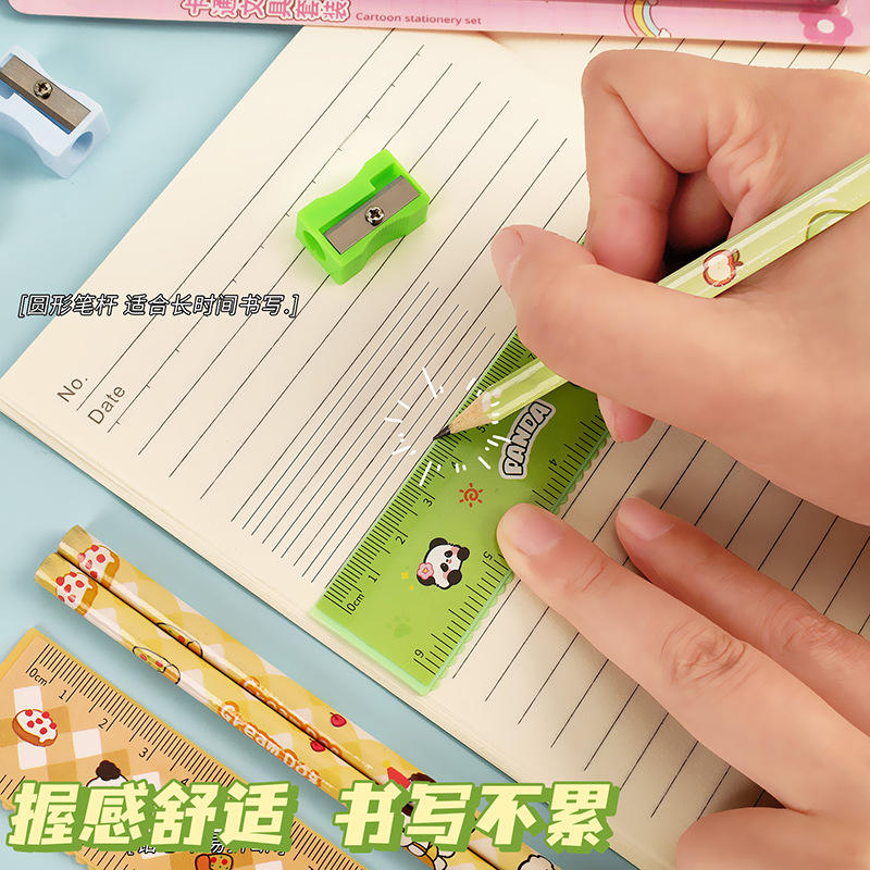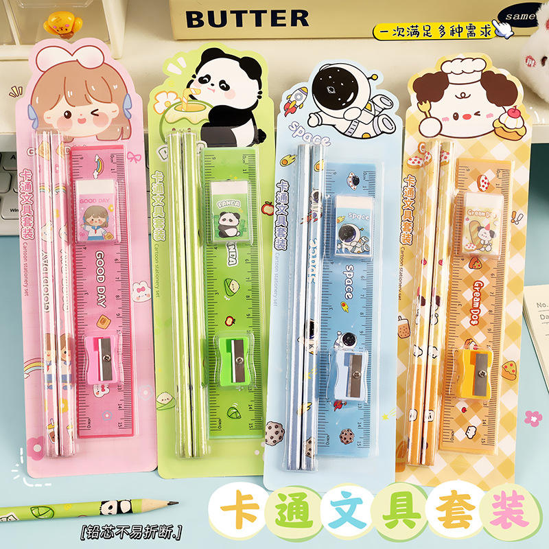 Cartoon Pencil Set Student Stationery Ruler 5 Piece Set Children Drawing Supplies Kindergarten Gift