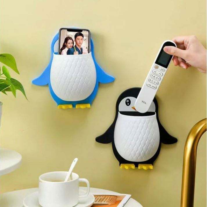 Cartoon Penguin Shelf Makeup Tools Organizer Dormitory Bathroom Toothbrush Storage Sorting Bedside Cell Phone Wall-mounted