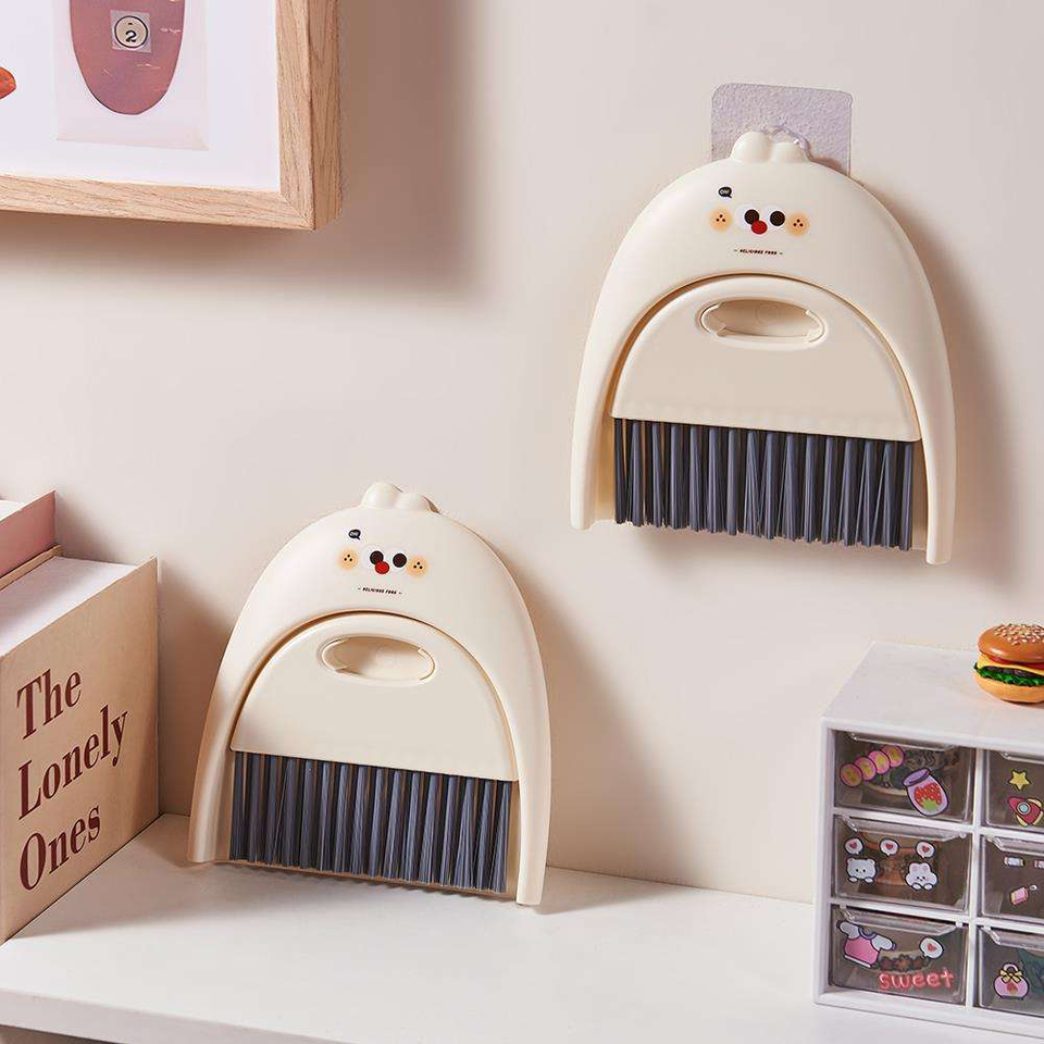 Cartoon Printed 2-in-1 Plastic Mini Desktop Broom and Dustpan Set for Table Keyboard Sofa Home Cleaning Fun Handy Tool