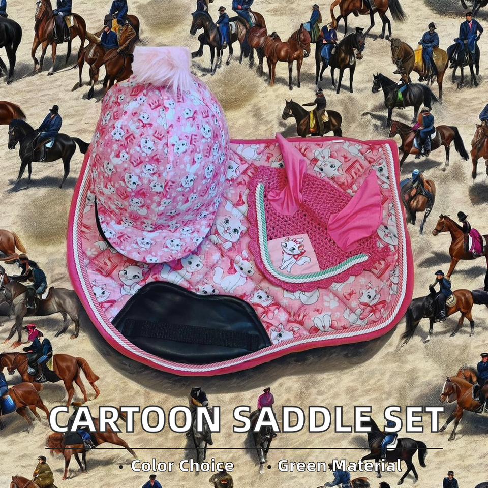 Cartoon Prints English Horse Saddle Pad Set Polyester Felt With Cotton Ear Net Lycraa Helmet Cover Customizable Printing Size
