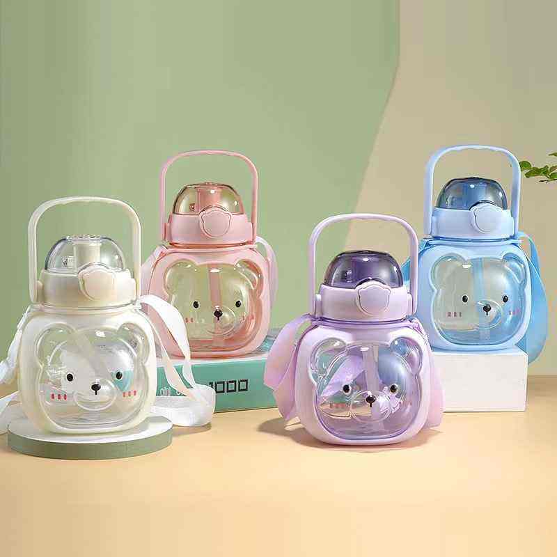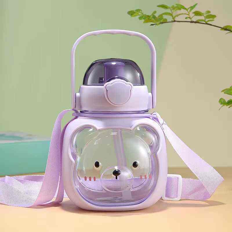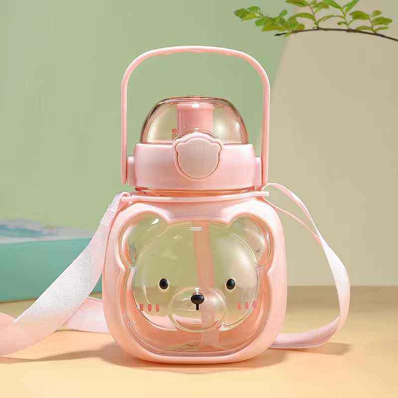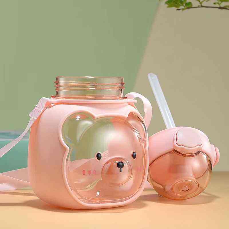 Cartoon Rabbit Plastic Cup Large Capacity Portable Strap Adults Water Bottle Drop-proof High Temperature Resistant Spring-loaded