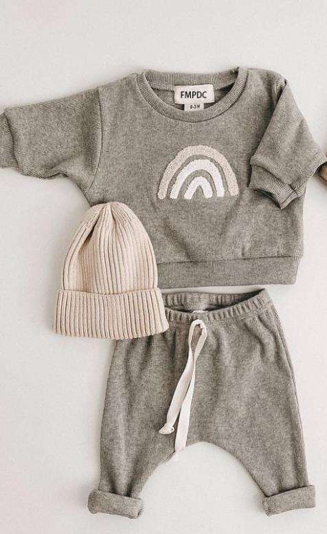 Cartoon Rainbow Kids Clothes Baby Sets Warm Winter Clothing Set Long Sleeve Baby Boys Tops+Pant Set