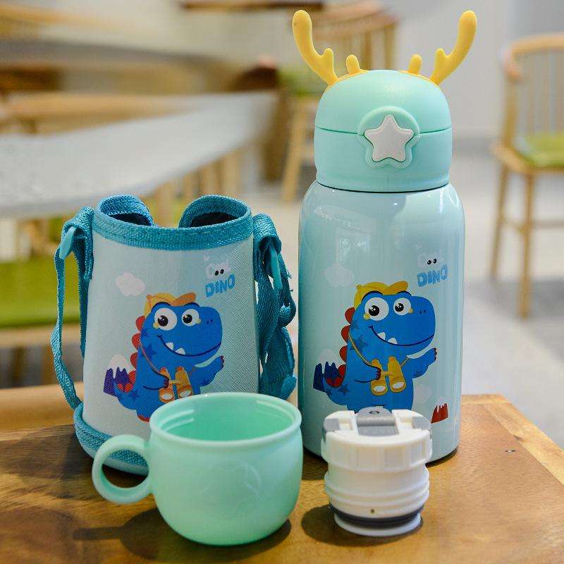 Cartoon Shape Deer Antler Design Children's Cute 316 Stainless Steel Water Thermos Kettle Bottle with Strap Straw