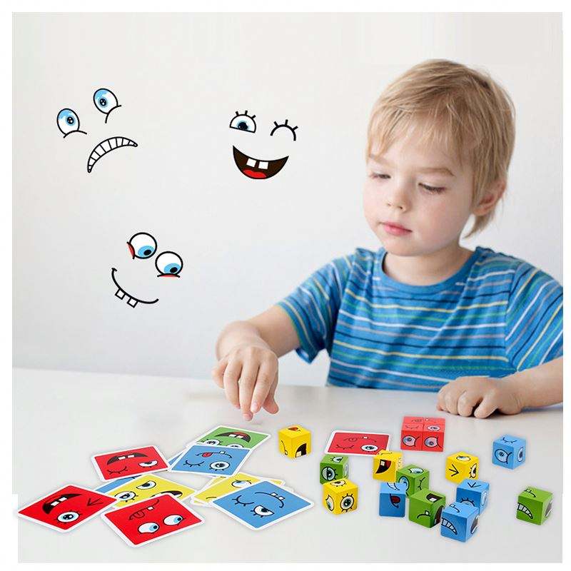 Cartoon Six Sides Smiling Face Painting Building Block 3D Toy Kids Montesori Furniture Educational Building Block Toy