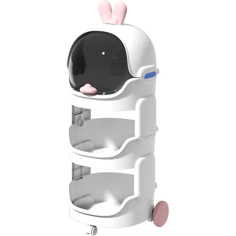 Cartoon Style Trolley Cart Household Storage Rack With Pulleys Children Toys Holder Rack Movable Snacks Storage Shelf