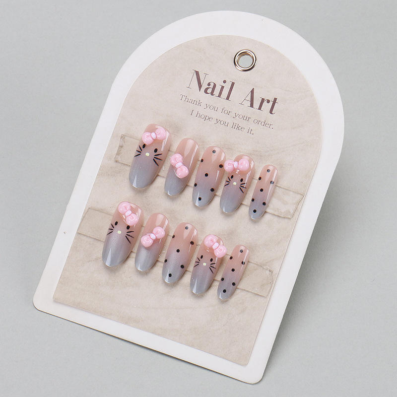 Cartoon Wearable Tips High-End Cat Eye Gradient Nail Stickers Removable Xiaohongshu Hot-Selling Cute Girl Fake Nails
