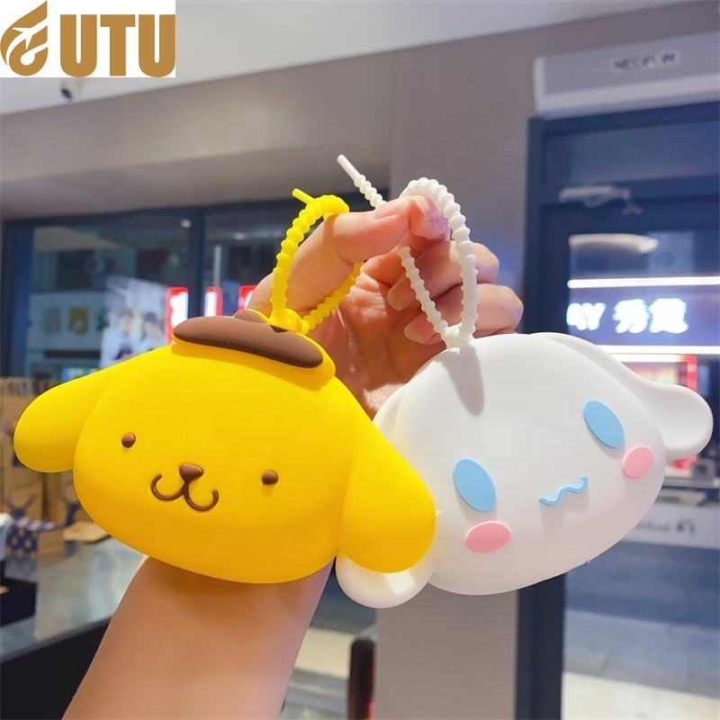 Cartoon keychain Cute silicone coin Mini bag Children's purse doll machine toy gift-F