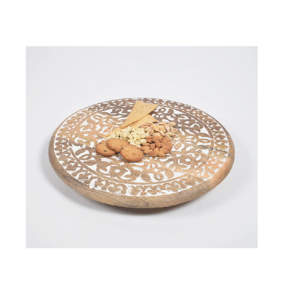 Carved Design Wood Lazy Susan Glass Spice Rack Turntable for Cabinet Wood Base Storage for Spice Food Natural Wood Color