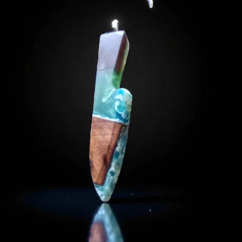 Carved Geometric Wooden Resin Healing Energy Witchcraft Divination Pendulum Necklace with Model Design