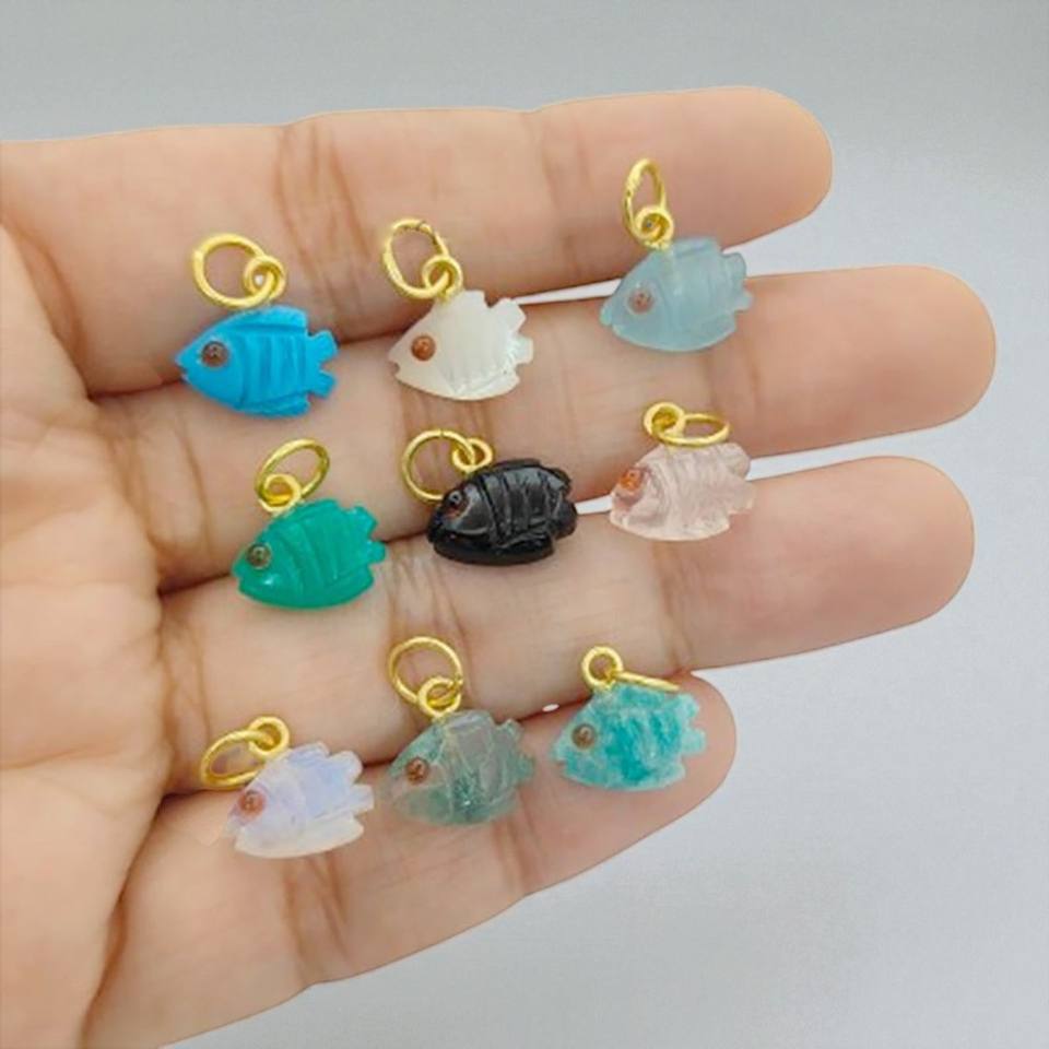 Carved Koi Fish Pendant Natural Rainbow Moonstone Stone DIY Craft for Religious Jewelry Making Symbolizing Luck & Abundance