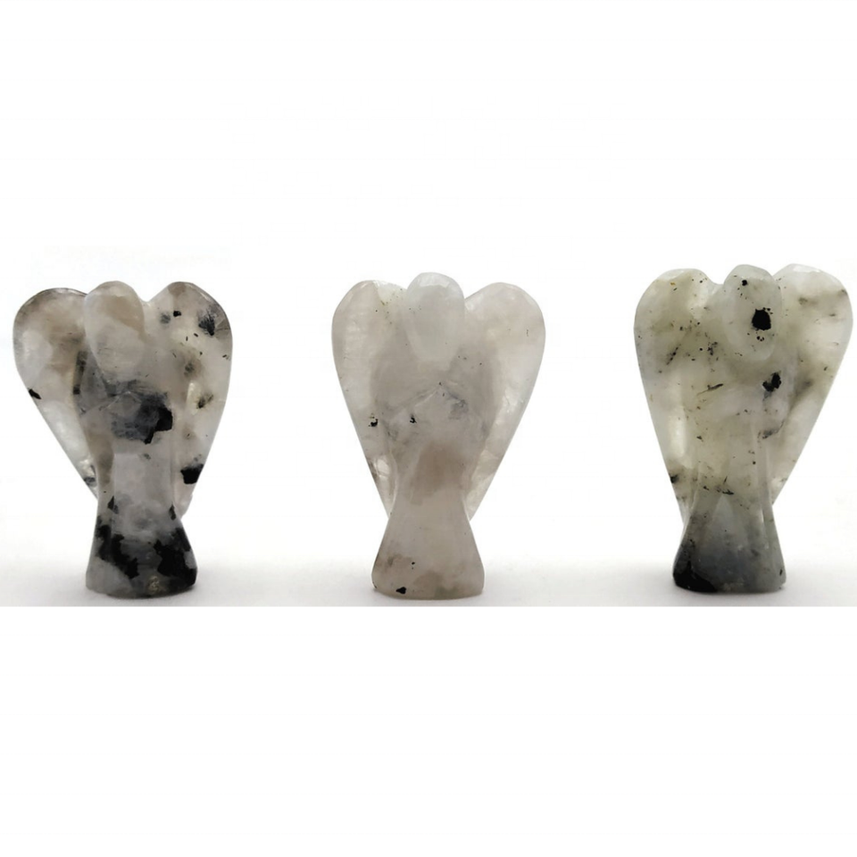 Carved Moonstone Gemstone Peace Angel Pocket Guardian Angel Healing Statue 2 inch