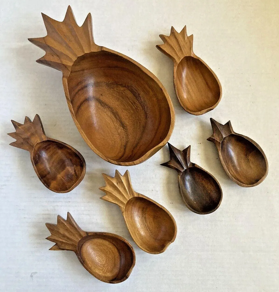 Carved Pineapple Bowl, Teak/Monkey Pod Wood, Hand Carved Wooden Bowl handmade wooden serving bowl for sale