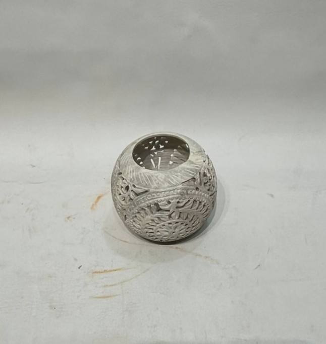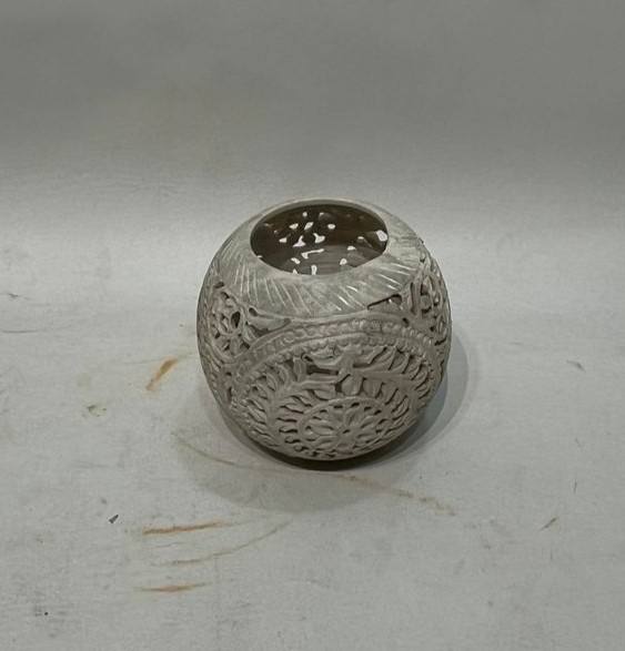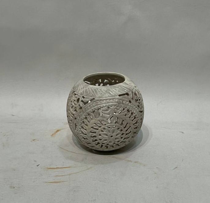 Carved Stone Globe Candle Holder elegant decorative piece inspired by traditional hand carved artistry