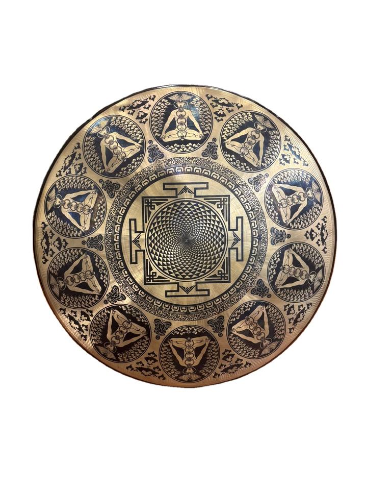 Carved Tam-Tam Gong Metal Crafts with Seven Chakras Decorative Singing Bell for Yoga Meditation Buddhism Healing Purposes