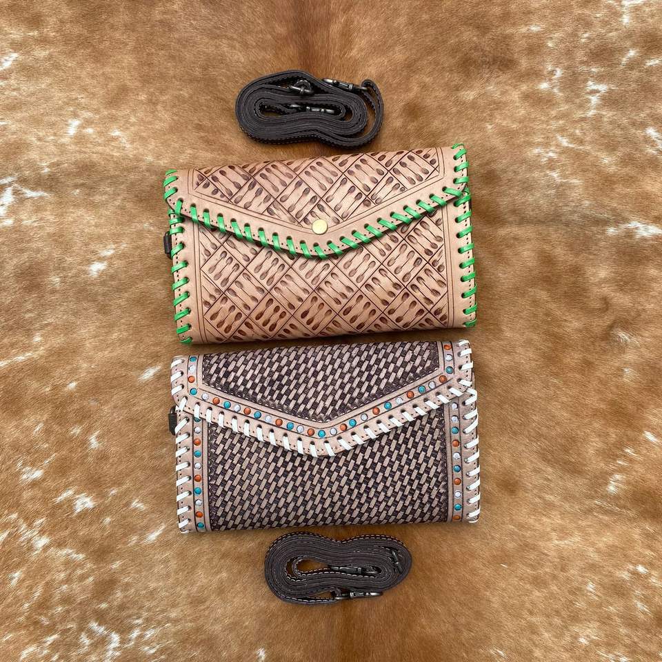 Product Name:Hand Tooled Leather Crossbody Wallet