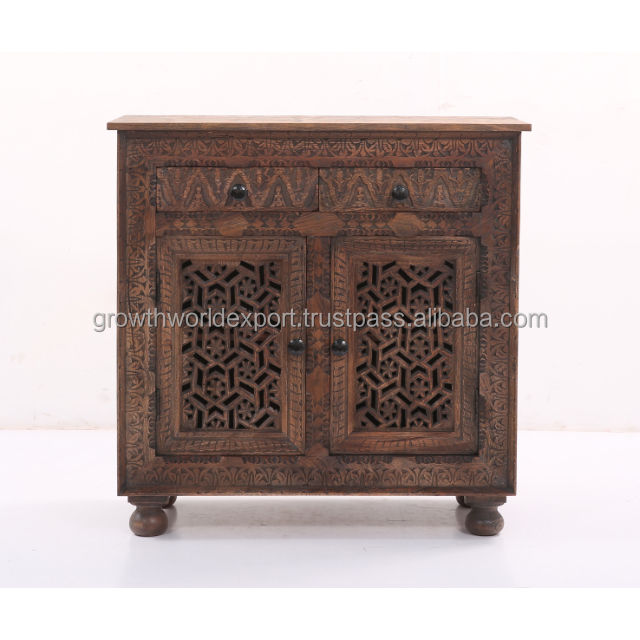 Product name:Wooden Carving 2 Door Brown Cabinet With Storage