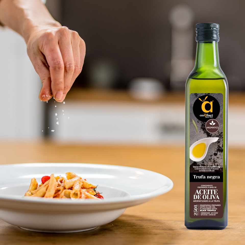 Casalbert Greenish Yellow Flavored Olive Oil 250Ml Black Truffles Organic Olive Oil Extra Virgin Made in Mediterranean Spain