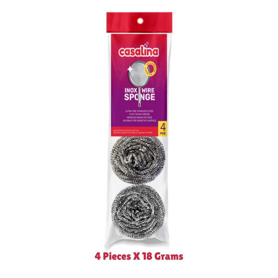Casalina Inox Stainless Steel Wire Wool Pot Scourer Scrubber 4-Pack Kitchen Cleaning Sponges & Scouring Pads