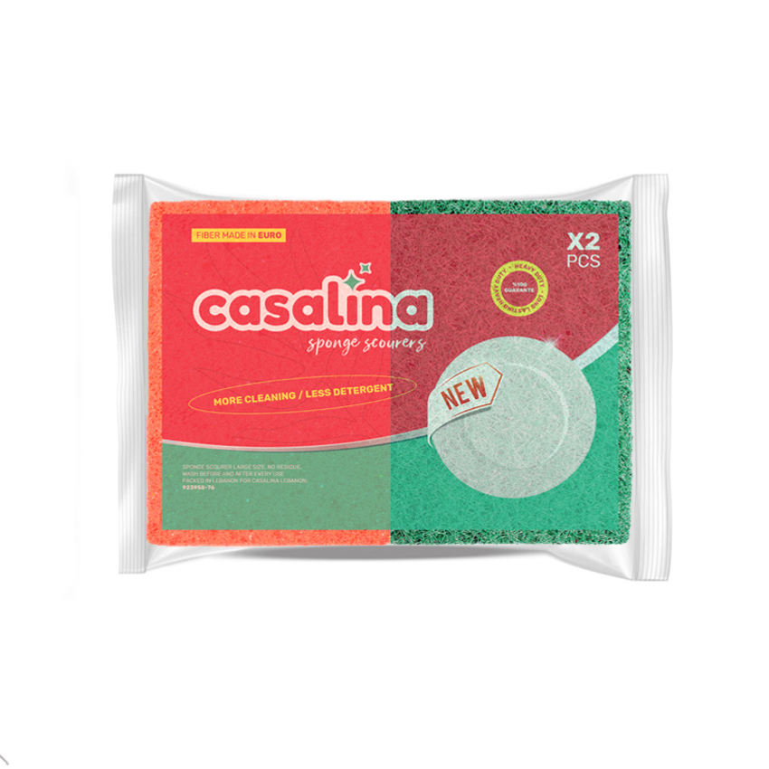 Casalina 2-Pack Kitchen Scourer Sponges Dish Cleaning Scrubber Pads in Multiple Colors One Piece Size 12.5x9x3cm