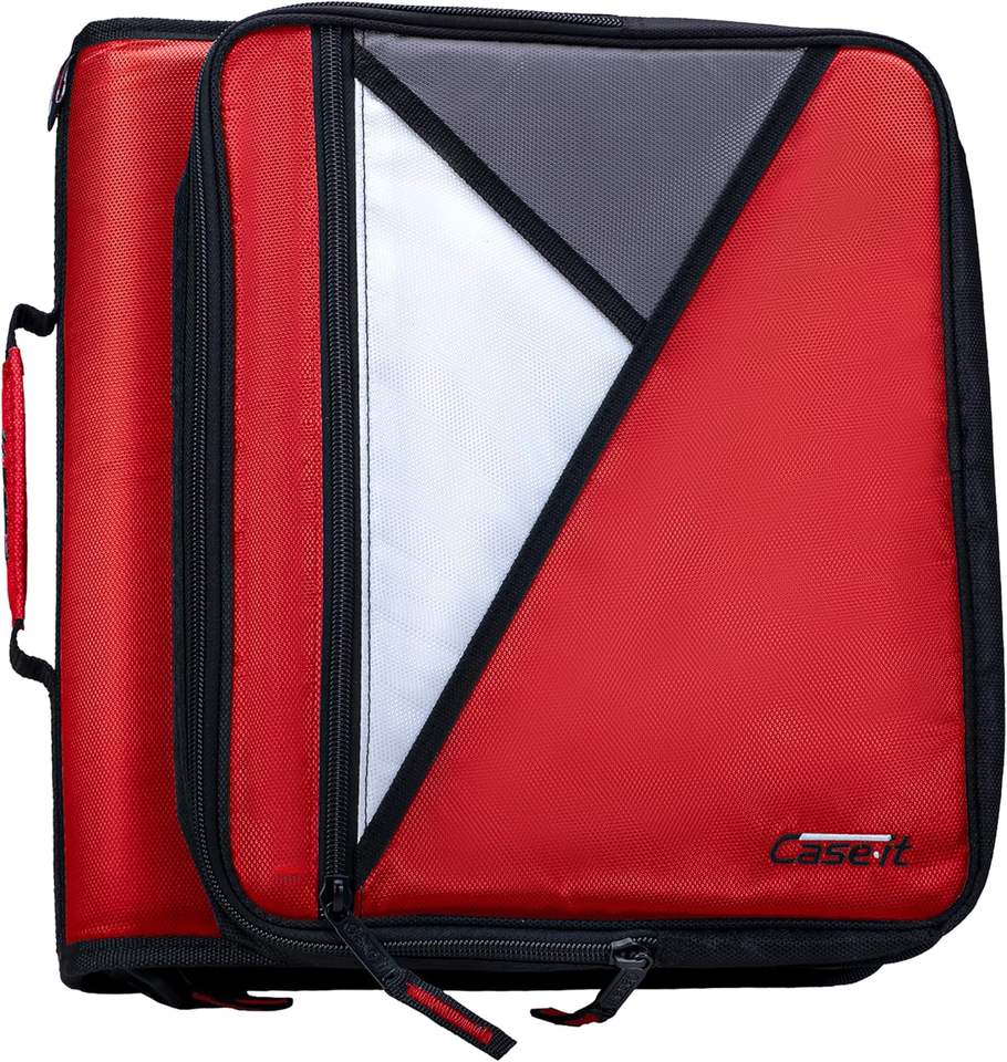 Case-it Factory Wholesale Factory Sized Zip Tab 4-Inch 3 D-Ring Zipper Binder with 5-Tab File Folder, Red