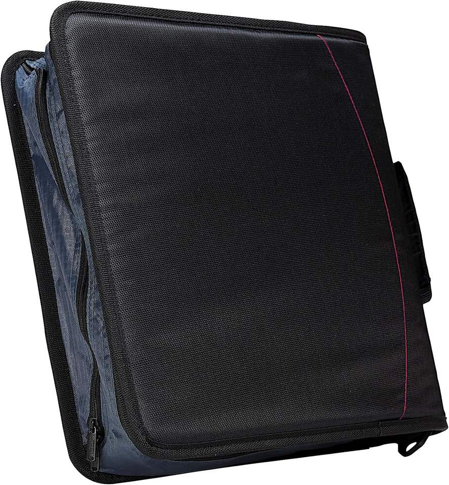 Case-it Luxury Mighty Zip Tab Zipper Binder 3" O-Ring 5-Color Tabs Expanding File Folder Shoulder Strap Handle-Lightweight