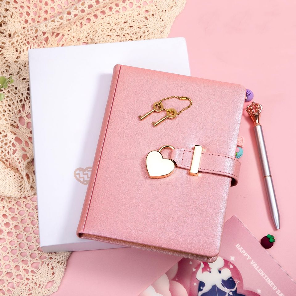 Casebound Binding Thread Sewing Lockable Diary With Pen Pink Notebook Diary Gift Set Luxury Customised Journal With Lock and Key