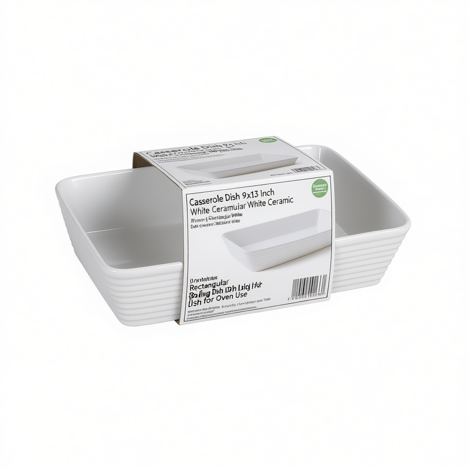Casserole Dish 9x13 Inch Rectangular White Ceramic Baking Dish for Oven Use
