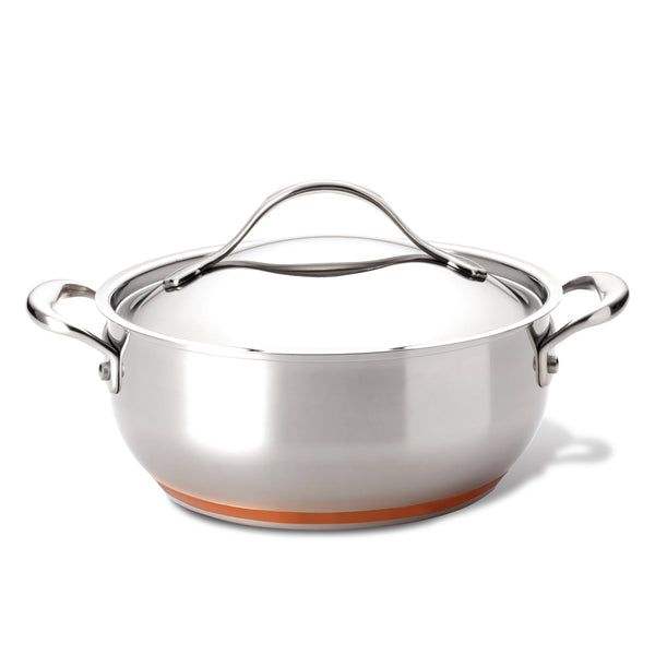 Durable Stainless Steel Metal Food Warmer Casserole Dish with Shiny Polished Finish and Glass Lid for Home or Office Use