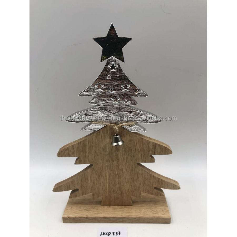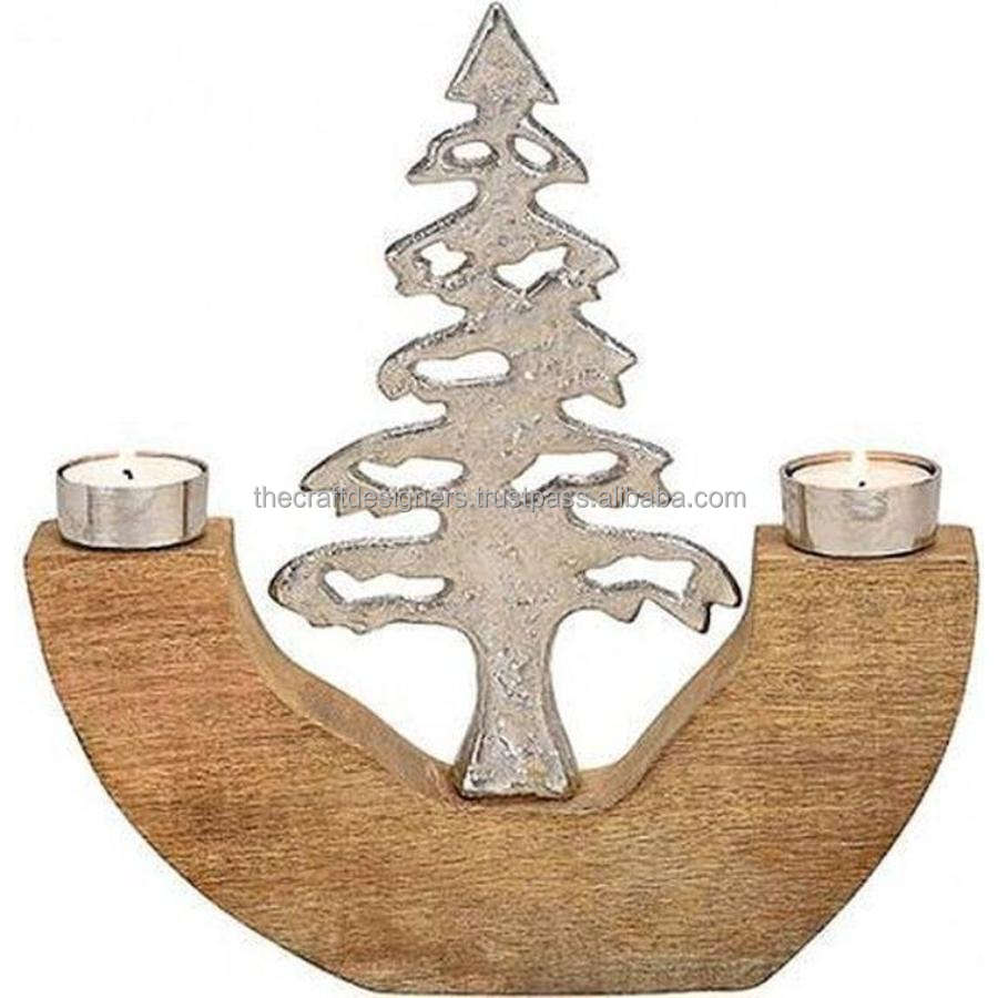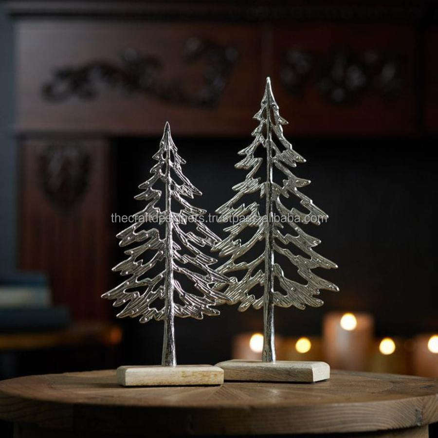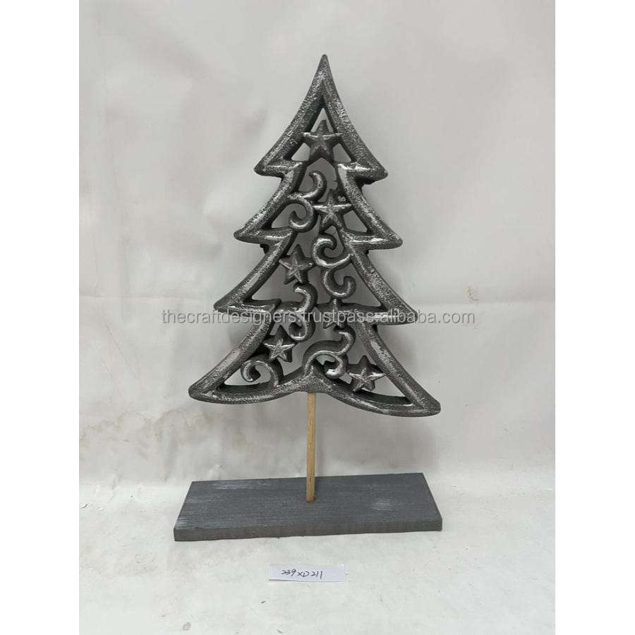 Cast Aluminium Accent Christmas Tree Object With Wood Base Holiday Events Deco Xmas Tree Sculpture Tableware Showpiece