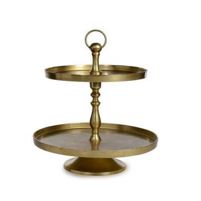 Cast Aluminum Antique Brass Two Tiered Cake Server, Cake Stand