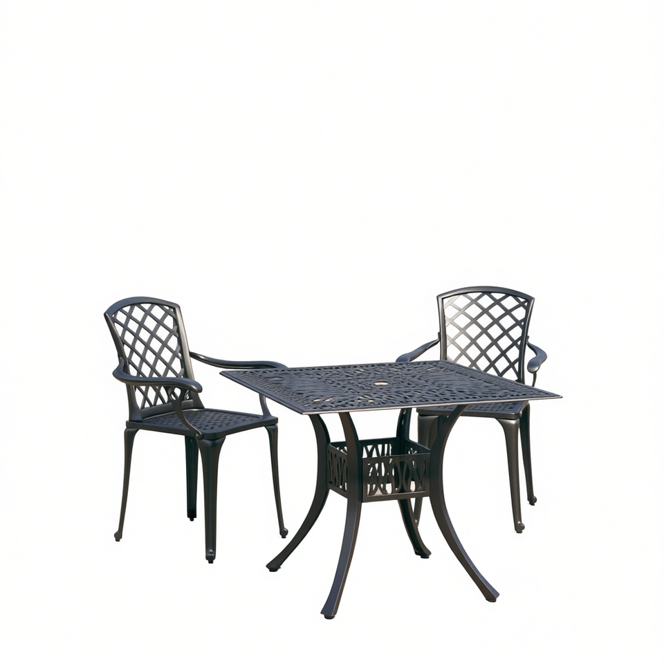 Cast Aluminum Bistro Set 3 Piece Black Outdoor Garden Furniture Weather Resistant Traditional Style