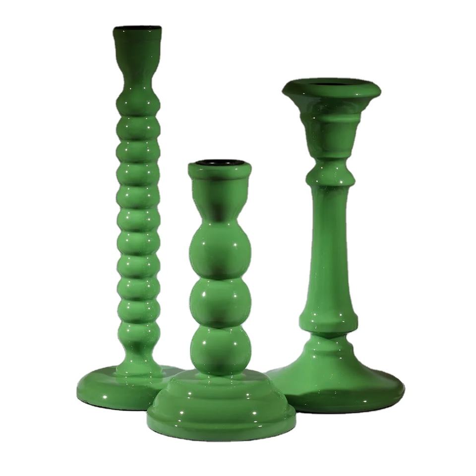Cast Aluminum Candle Stand Green Coated Large Pillar Candle Holder Copper Brass Antique Silver Antique High Enamel Candle Stand