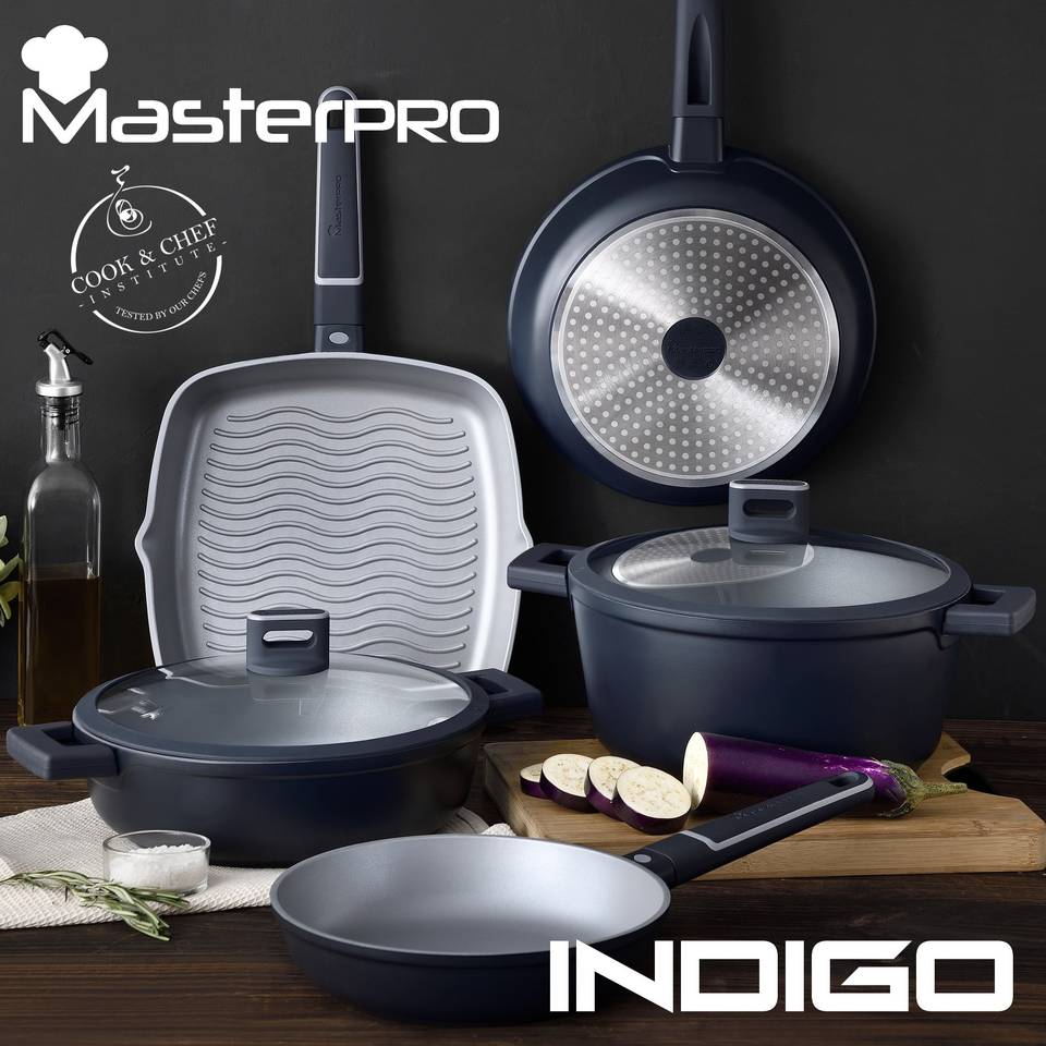 Cast Aluminum Casserole Set (28x13cm) + Low Casserole (28x8cm) + Wok (28x8cm) with Lids INDIGO MasterPRO