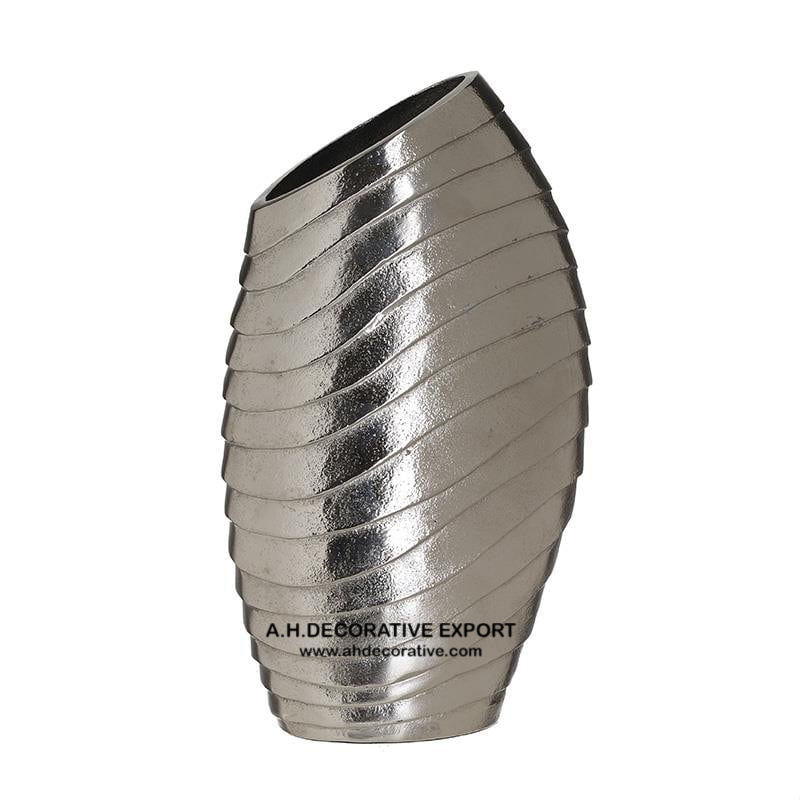 Cast Aluminum Chrome Plated American Style Tall Hammered Metal Handcrafted High Quality Home Table Centerpiece Vase Low Price