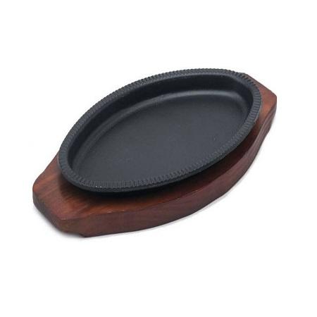 Cast Iron and Wooden Sizzler Plate for Restaurant Kitchen Food Serving Sizzler Plate at Affordable Prices