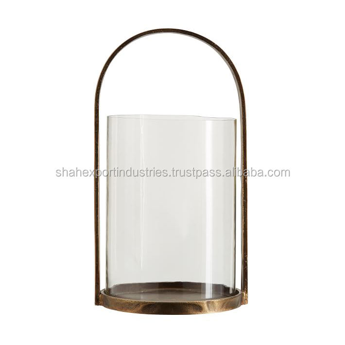 Cast Iron Antique Gold Hurricanes Pillar Candle Lantern with Removable Glass Candle Lantern for Home and Wedding Decor