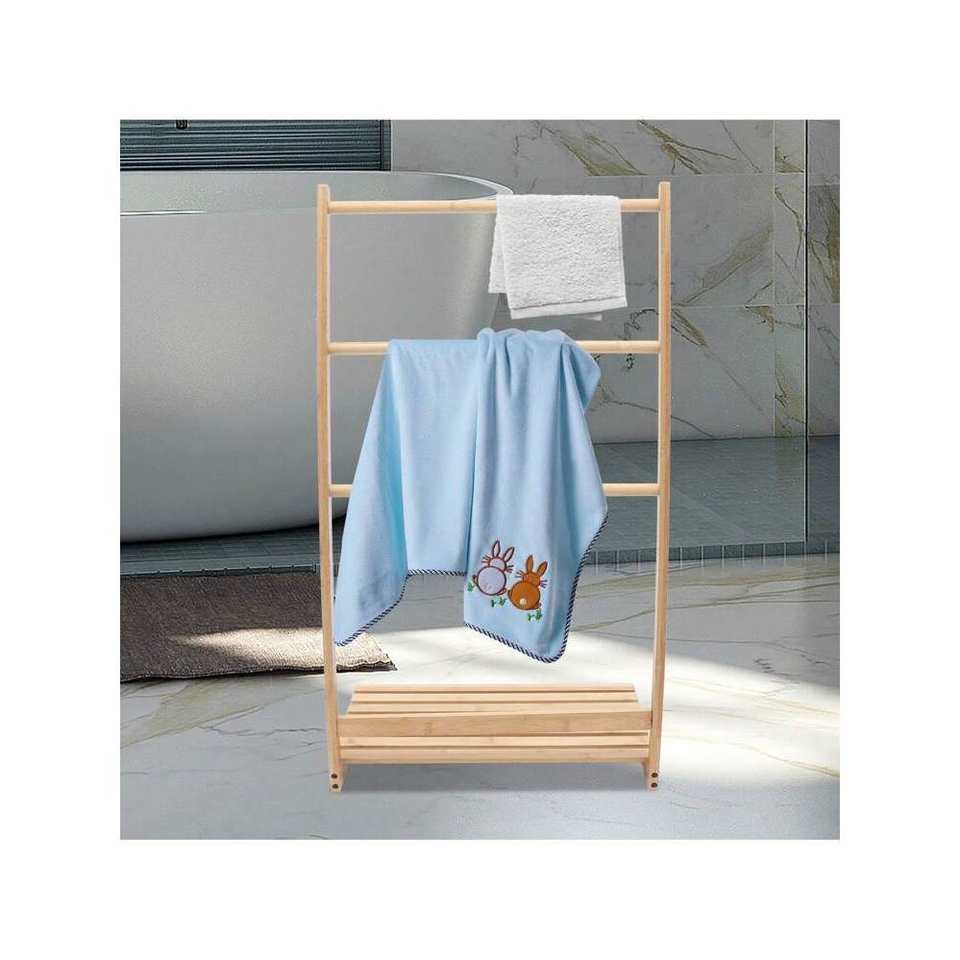 Cast Iron Bamboo Solid Floor Drying Rack Three-Layered Household Towel Shelf Bathroom Towel Rack Floor-Standing Design