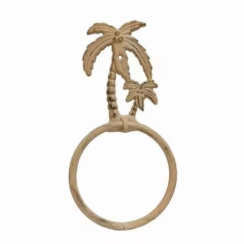 Cast Iron Palm Tree Wall Towel Ring, Wrought Iron Handmade Towel Holder for Bathroom and Kitchen